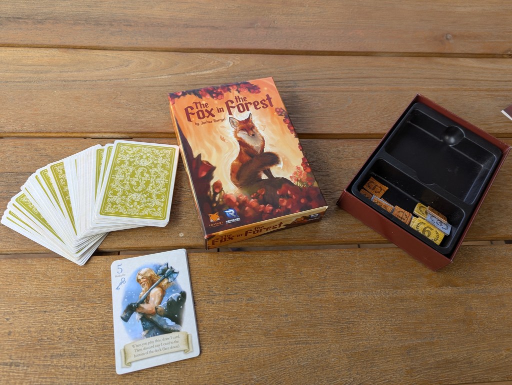 The Fox in the Forest has been the source of a quite a few of those hours. It is a two-player only must-follow trick-taker. There are three suits. There is a trump. Maybe in 2017 I would be required to explain these terms, but I don’t think that’s necessary today. Even the non-gamers have played Euchre or Hearts, I figure.