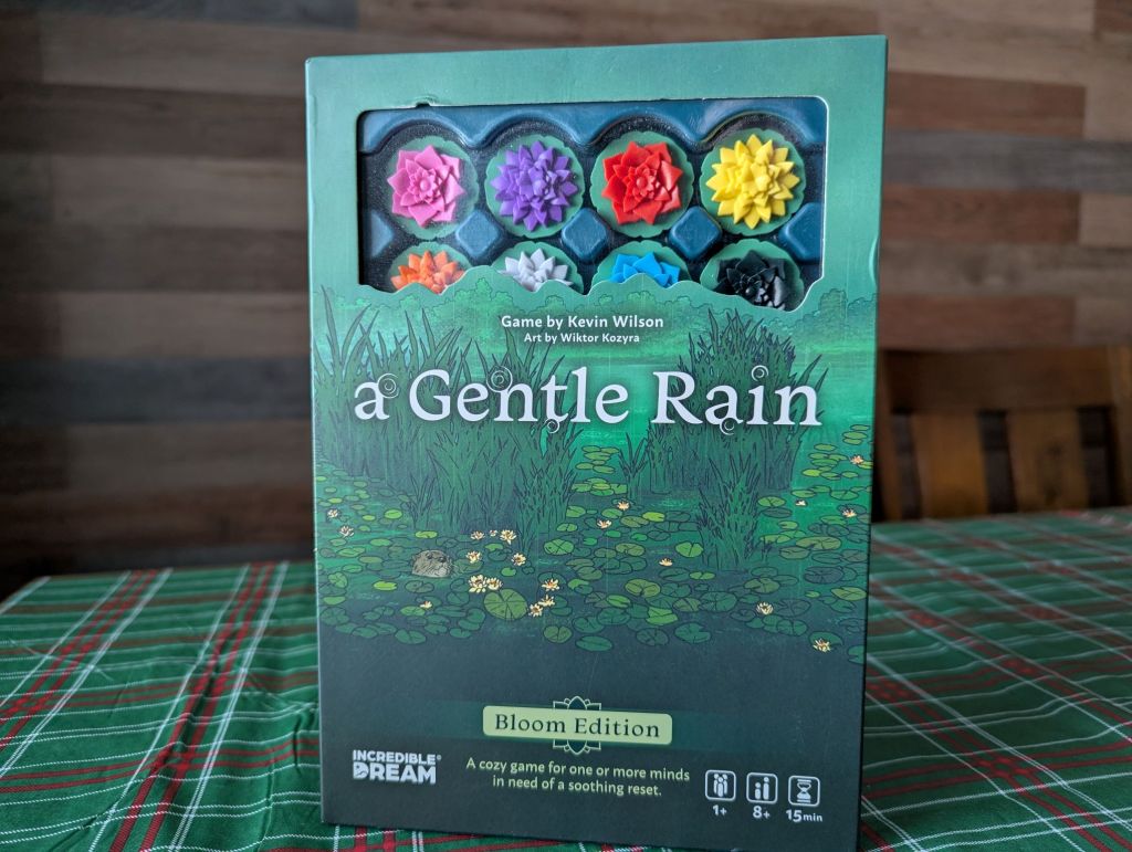 A Gentle Rain is not reinventing the wheel here. Shuffling around pieces, being present at the table, focusing on something tangible rather than doom-scrolling or actively trying to be distracted. That is not only a description of A Gentle Rain; it is a description of hundreds of other board games I’ve played. But I would be remiss not to point out I do think this game has some special juice to it. Putting on some ambient music (I chose the thematically appropriate Water Memory by Emily A. Sprague) and playing a couple rounds got me in a specific, good mood. The mood to write this review, for one, after a couple days of intense writer’s block.