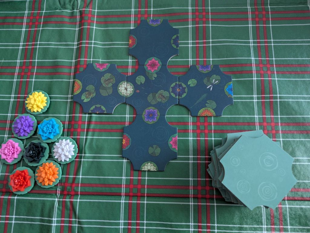 Towards the end of the game, I find myself getting into a rhythm. I’ve spent ten minutes building out my lake, so I am familiar with what it needs. A blue flower with an orange one counter-clockwise. A red opposite to a yellow. Something with a purple on it. When I pull a tile, I take a breath and assess where it goes. Often, it provides no immediate benefit besides expanding the lake on one side, providing another one or two slots which I am now one tile short of completing.